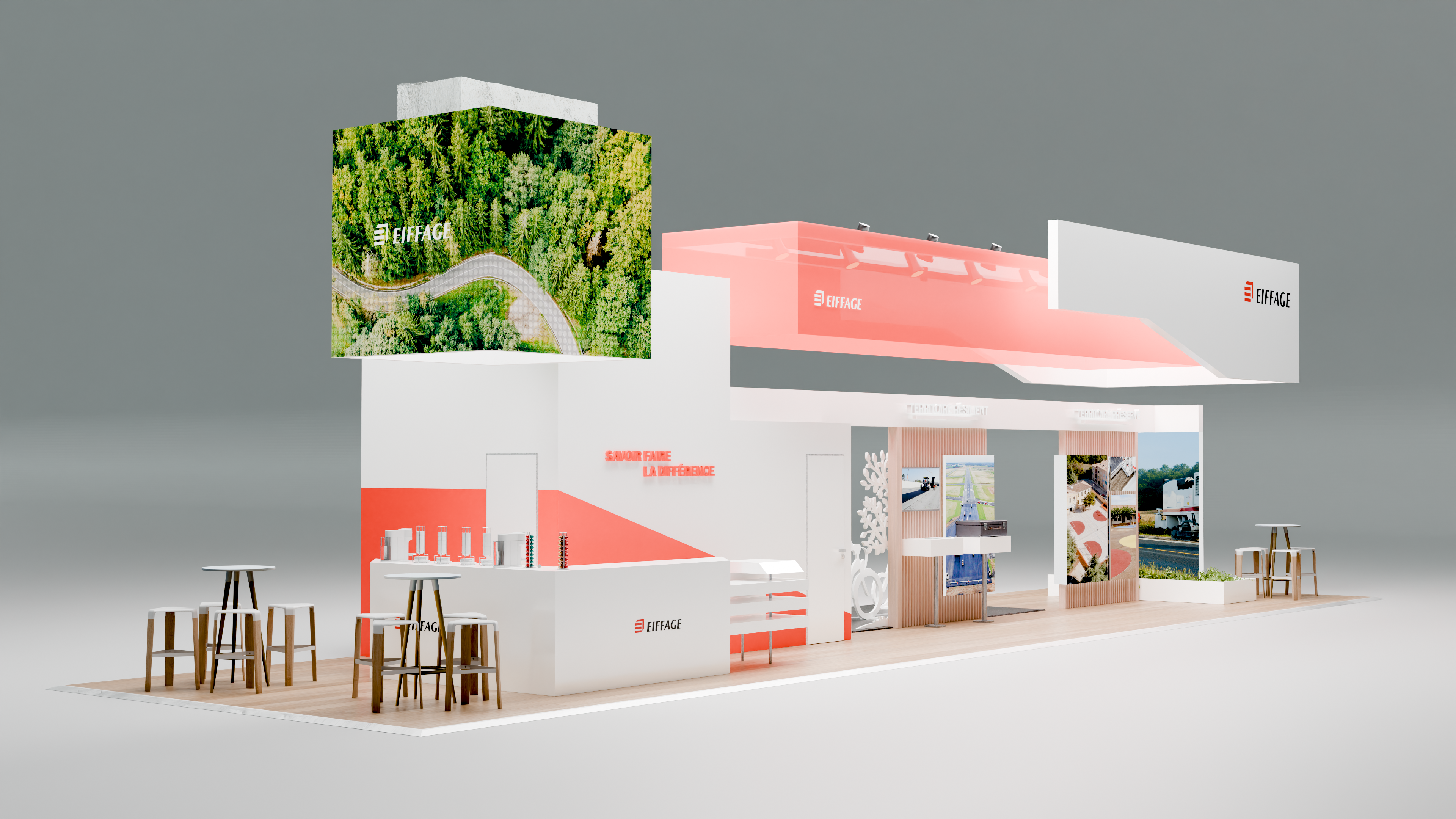 Visuels 3D et scénographie pour le stand Eiffage au SMCL 2025.